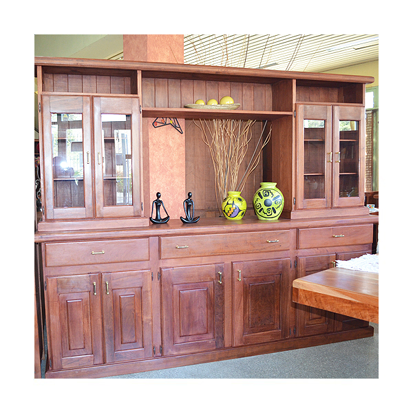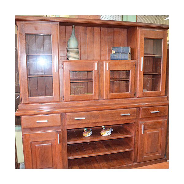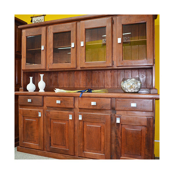Armado con parantes espigados y encastrados con moldura y contramoldura al resto de la estructura. En la alzada, los estantes son de madera con moldura. Los mismos poseen regulación por medio de pitones de bronce.